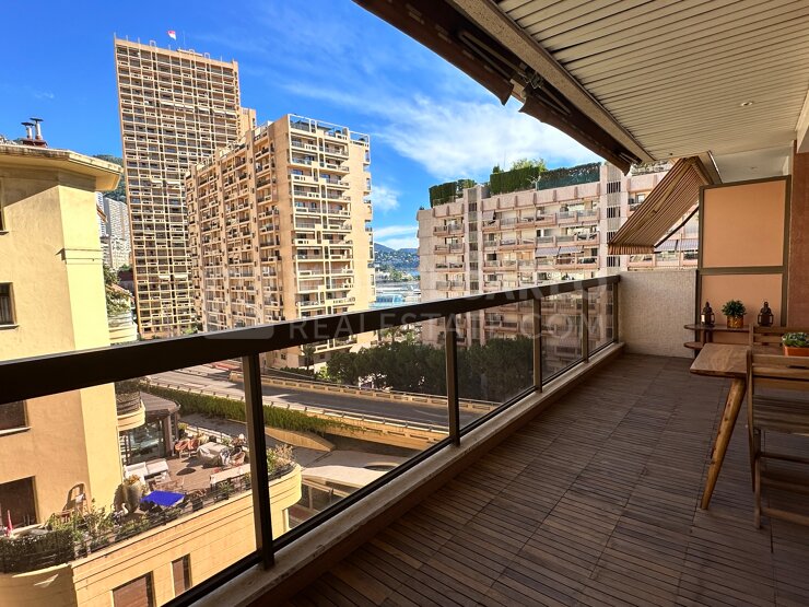 Cet appartement est situé à quelques pas des jardins du Casino et du nouveau quartier de Mareterra, dans un immeuble disposant d'un service de sécurité. L'appartement traversant est lumineux et bénéficie d'une vue imprenable sur le circuit du Gran...