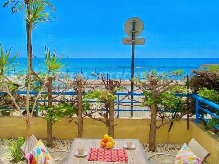 Appartement en première ligne avec une grande terrasse de 46 m² donnant directement sur la mer. Séjour lumineux avec accès à la terrasse offrant un espace de vie agréable. La disposition comprend une chambre et une cuisine indépendante. Les hon...