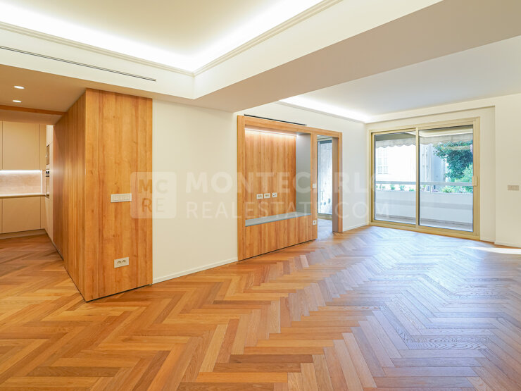 Situé sur une zone piétonne, dans un magnifique quartier de la Condamine, très bel appartement entièrement rénové, composé d'un beau séjour...