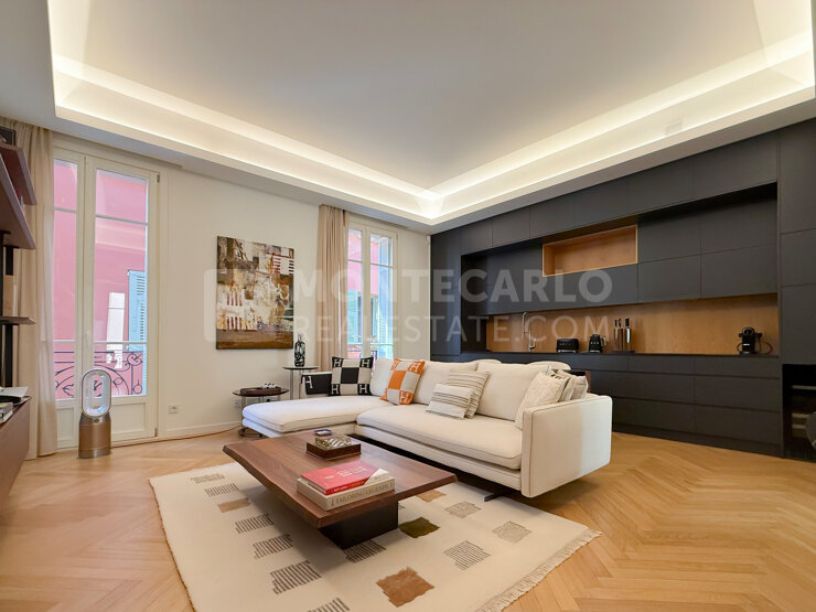 Appartement entièrement rénové avec goût et matériaux de qualité situé en plein coeur du quartier de la Condamine et du port de Monaco.