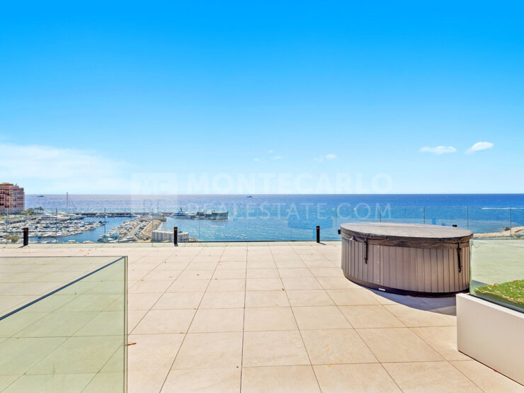 Magnifique appartement de 4 pièces en dernier étage de 112,5 m² habitables + 34,5 m² de terrasses à quelques minutes à pied du centre-ville de Cap d’Ail et de la plage de la Mala. Très lumineux e...