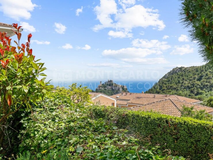Eze, à quelques minutes de Monaco, en position dominante, cette villa sur toit dernier étage, unique offre une vue spectaculaire à 180° sur la mer Méditerranée et le château médiéval d’Eze. Situé dans une résidence sécurisée, au calme, ce duplex r...