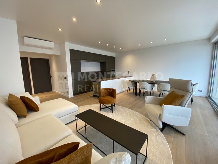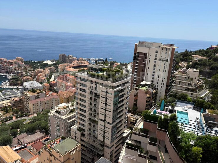 Situé en étage élevé de la prestigieuse résidence Monte Carlo Sun, ce superbe appartement entièrement rénové offre une vue exceptionnelle sur la mer Méditerranée. D’une surface totale de 155 m², dont 36,5 m² de terrasse, il se compose d’un double...