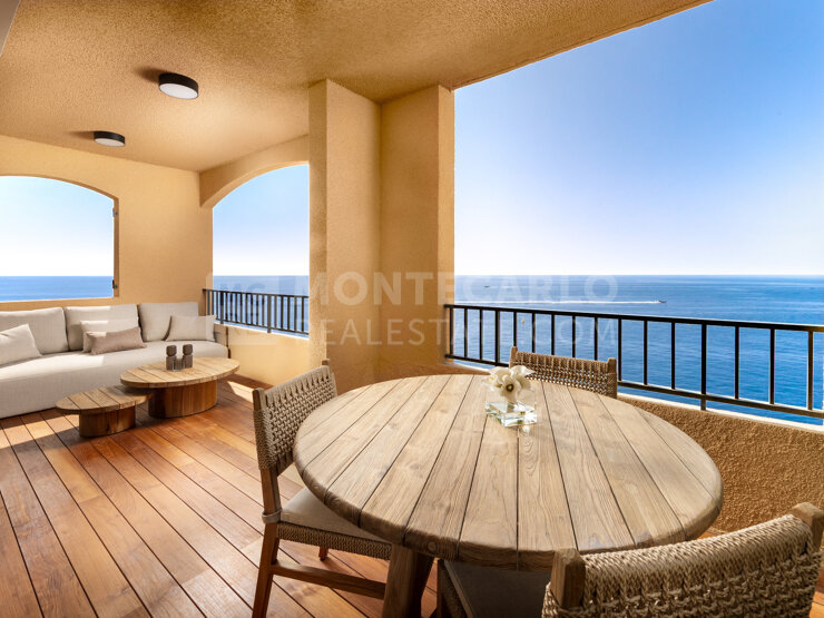 Situé en étage élevé de la prestigieuse résidence Monte Carlo Sun, ce superbe appartement entièrement rénové offre une vue exceptionnelle sur la me...