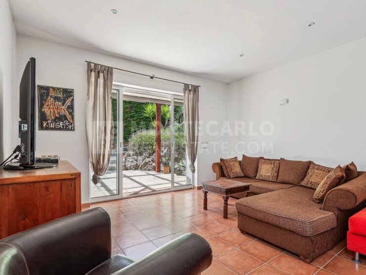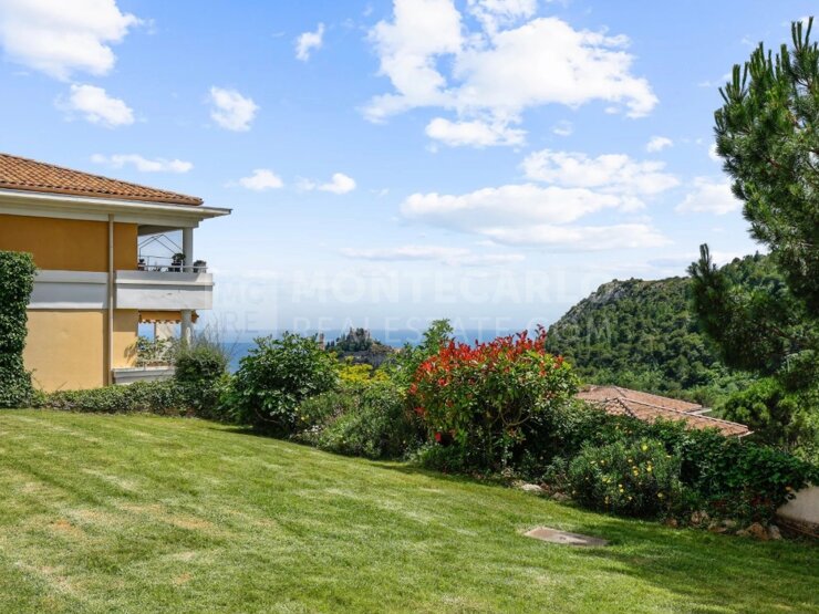 Situé au rez-de-jardin d’une petite copropriété de quatre logements, à proximité du village d’Èze, cet appartement de 120 m² bénéficie d’un cadre paisible et d’un fort potentiel. Il se compose de trois chambres, deux salles de bains, d’un séjour lumineux donnant sur une terrasse spacieuse et un jardin privatif de 330 m² avec vue dégagée sur le village. Quelques rafraîchissements sont à prévoir, mais la présence d’un parking privé et d’une grande cave complète ce bien à fort attrait résidentiel.