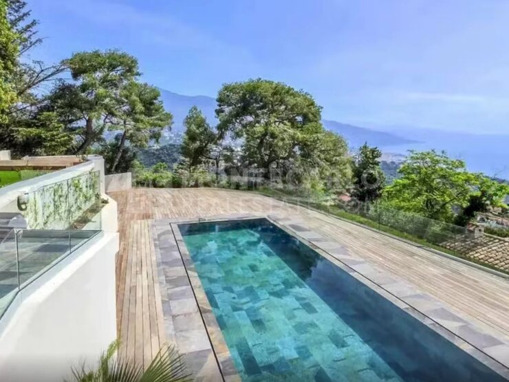 ROQUEBRUNE CAP MARTIN - SUPERBE VILLA CONTEMPORAINE 5 PIÈCES AVEC VUE PANORAMIQUE MER PISCINE DOUBLE GARAGE PARKING Roquebrune-Cap-Martin, nichée dans un calme absolu, au sein d’un domaine privé et sécurisé, cette villa contemporaine neuve de 237 m² bénéficie d’une position dominante offrant une vue spectaculaire sur la mer, du Cap Martin jusqu’à Menton.