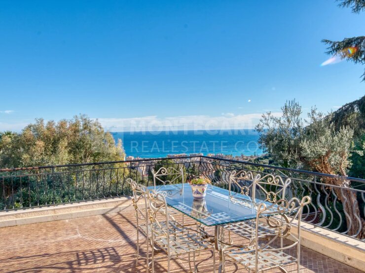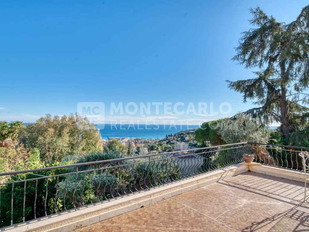 Roquebrune Cap Martin -Rare Opportunité : Villa Vue Mer Panoramique à Fort Potentiel – Monaco Proche Roquebrune Cap Martin, à seulement 15 minutes de Monaco, au calme absolu, élégante villa individuelle en position dominante, vue mer panoramique, offrant un spectacle unique sur la baie. Déployée sur trois niveaux, elle se compose d’une maison principale de 300 m² et d’une annexe de 65 m2. Les grands volumes et la luminosité se conjuguent harmonieusement pour créer une atmosphère chaleureuse et intimiste.