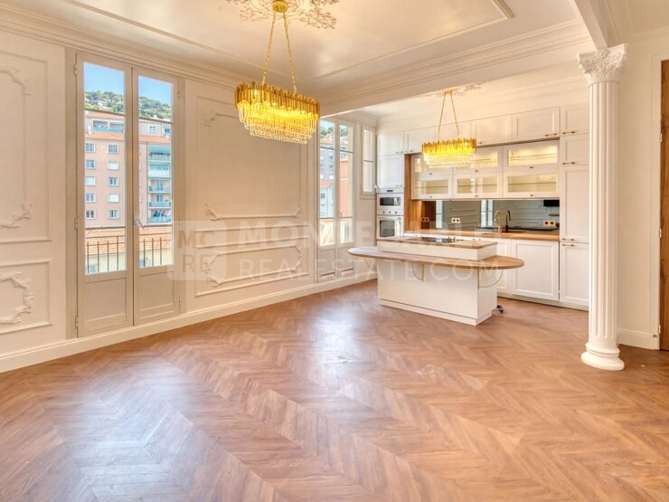 Beausoleil - Dernier étage, appartement bourgeois d'exception entièrement rénové avec terrasse Au dernier étage d’un immeuble de caractère, ce superbe 3 pièces entièrement rénové séduit par son équilibre parfait entre le charme de l’ancien et des prestations contemporaines de qualité.