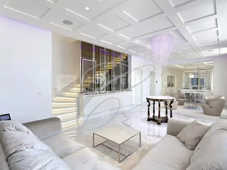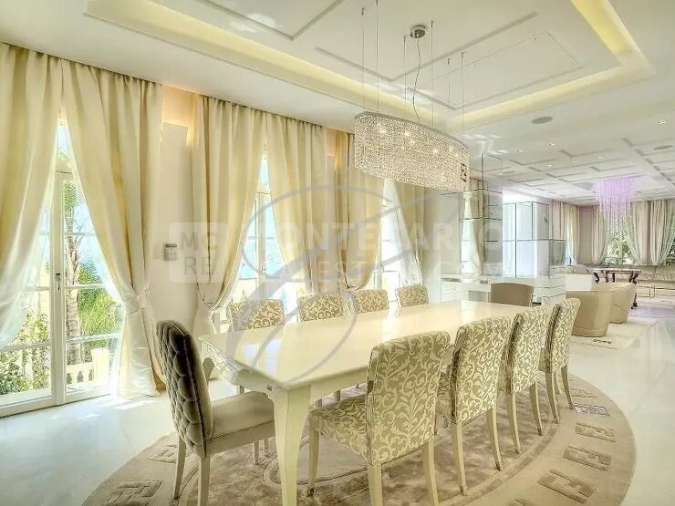 Surplombant la baie du Golfe Bleu, cette magnifique propriété neuve de style Néo-Colonial profite d'un panorama exceptionnel sur Monaco. Double séjour, cuisine professionnelle, 4 chambres en suite, un appartement pour le personnel, espace fitness et salle de cinéma. Entièrement décorés Fendi, les intérieurs offrent tout le confort moderne à la pointe de la technologie. Un ascenseur dessert tous les niveaux dont l'espace piscine spectaculairement paysagé et un immense garage.