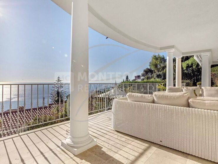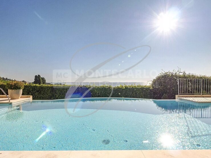 Dans domaine privé sécurisé, à 1 km de Monaco, luxueuse villa de maitre, au coeur d'un parc d'environ 1.618 m² avec grande piscine et pool-house. Vue mer panoramique.