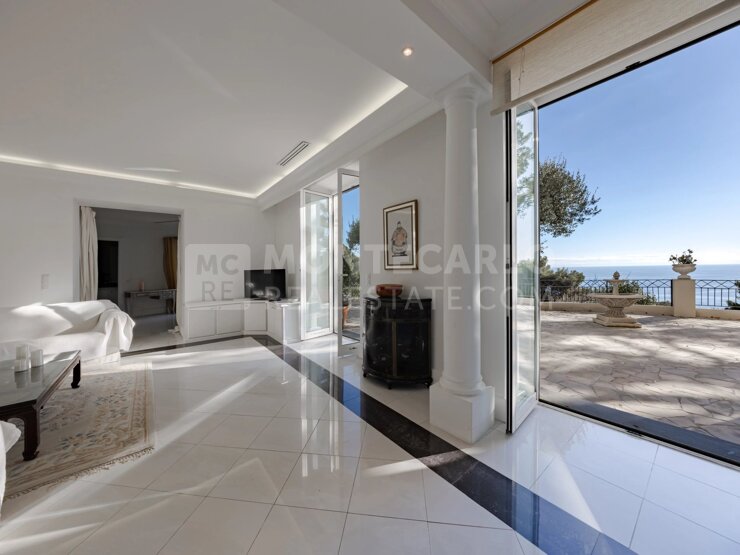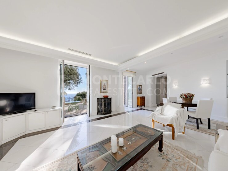 Appartement situé dans une belle villa édifiée en 1911 au style inspiré de l'art nouveau. Bel Appartement de 120m2 au coeur d'une belle villa au style inspiré de l'art nouveau, avec grande terrasse et jardin avec une magnifique vue mer aux portes de Monaco.