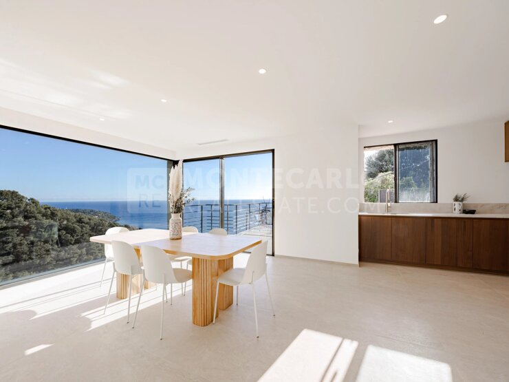 À seulement cinq minutes de Monaco, cette superbe villa contemporaine entièrement rénovée offre environ 200 m² d’espace de vie raffiné, dans un environnement calme et préservé, avec une vue mer dégagée.