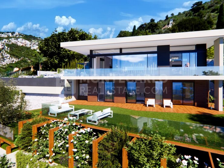 Villa neuve contemporaine avec vue panoramique sur la principauté Située en position dominante sur les hauteurs de Roquebrune, à seulement 400m de l’iconique hotel « Maybourne Riviera » cette propriété d’exception est édifiée sur un terrain de 1 500 m² exposé plein sud, cette villa neuve et contemporaine d’environ 280 m² séduit par son élégance, ses volumes généreux et ses finitions de très grand standing. Elle offre un cadre de vie unique avec une somptueuse piscine à débordement, un jardin paysager minutieusement aménagé ainsi que de vastes terrasses propices à la détente. À l’intérieur, vous découvrirez un spacieux séjour baigné de lumière, une salle à manger conviviale, et une cuisine design entièrement équipée. L’espace nuit comprend quatre chambres, dont trois suites avec salles de bains privatives, alliant confort et intimité. Les prestations sont à la hauteur des plus hautes exigences : domotique intégrée, système d’alarme, portail motorisé, porte blindée, ainsi qu’un garage fermé permettant le stationnement de cinq véhicules