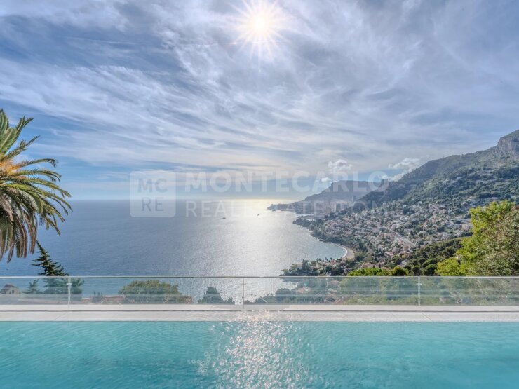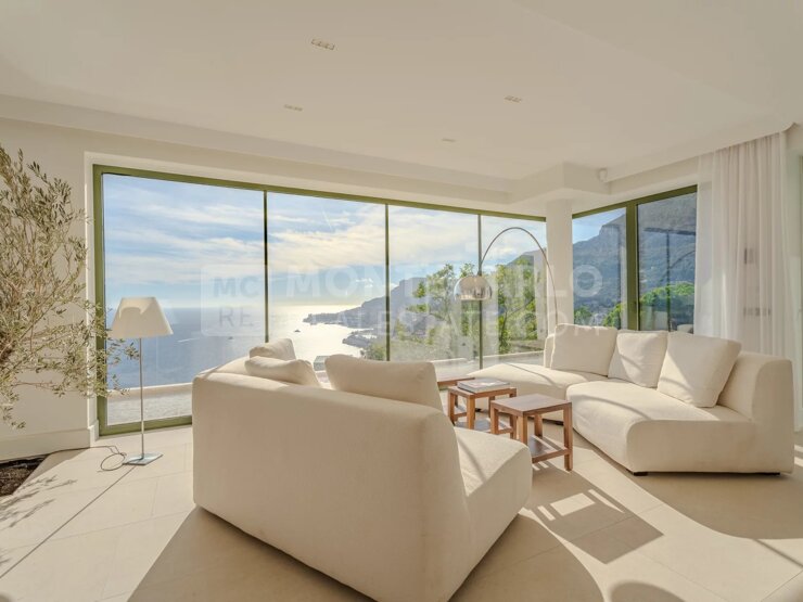 Sur les hauteurs de Roquebrune-Cap-Martin, cette propriété contemporaine entièrement neuve offre un cadre de vie exceptionnel, entre mer et montagne.
