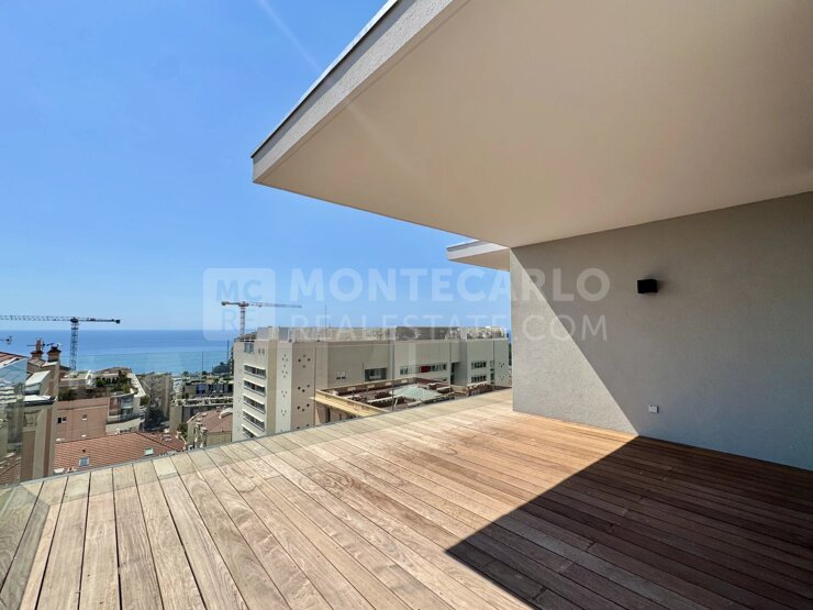 Frontière Monaco - Penthouse d'exception de 5 pièces avec vue mer Superbe penthouse de 5 pièces situé au dernier étage d’une résidence moderne et élégante. Ce grand appartement de 156 m², avec ses 4 chambres spacieuses, est idéal pour ceux qui recherchent un cadre de vie confortable et haut de gamme.