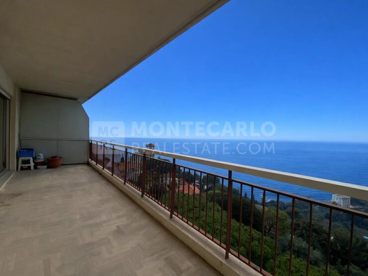 Opportunité rare – 3 pièces à rénover avec vue mer panoramique, proche Monaco Dans une résidence confidentielle avec ascenseur et jardin en copropriété, au calme absolu et à proximité immédiate de Monaco, découvrez ce bel appartement d’angle situé au 5ᵉ et avant-dernier étage.