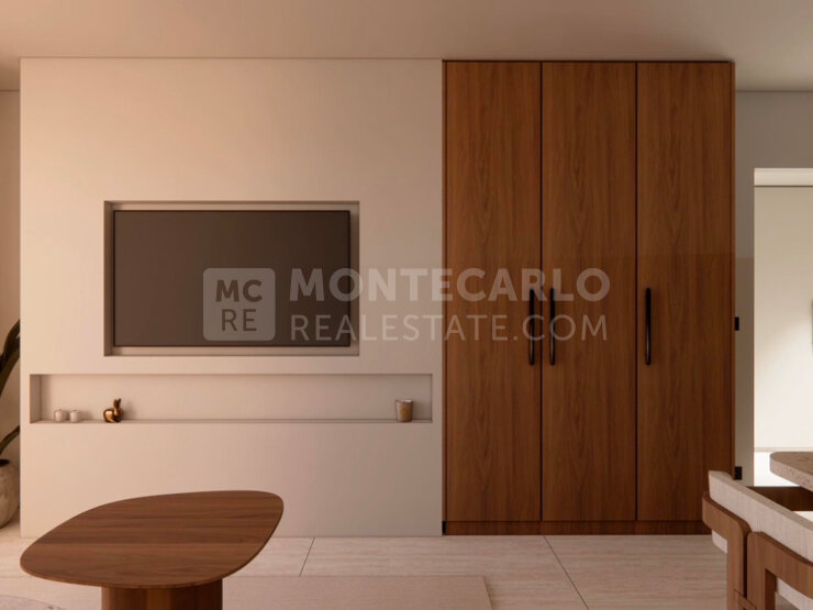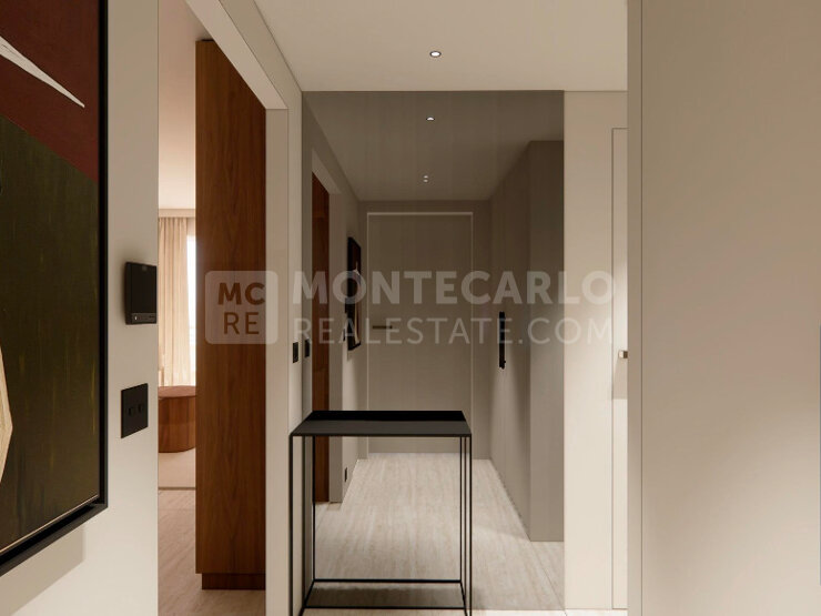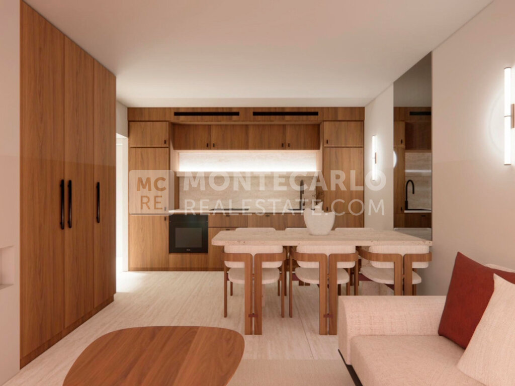 Aux portes de Monte- Carloce superbe 3 pièces entièrement rénové par un studio d'architecte séduit par son design moderne, sa luminosité et sa situation idéale à quelques pas de la gare et du Carré d'Or.