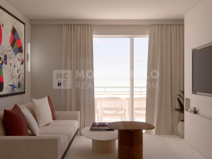 Situé dans une résidence avec conciergerie, l'appartement offre un bel espace de vie lumineux ouvert sur une terrasse avec vue dégagée sur Monaco. Il dispose de deux chambres dont une suite master avec balcon, deux salles de bains, ainsi que de nombreux rangements, le tout rénové avec des matériaux modernes et des finitions soignées.