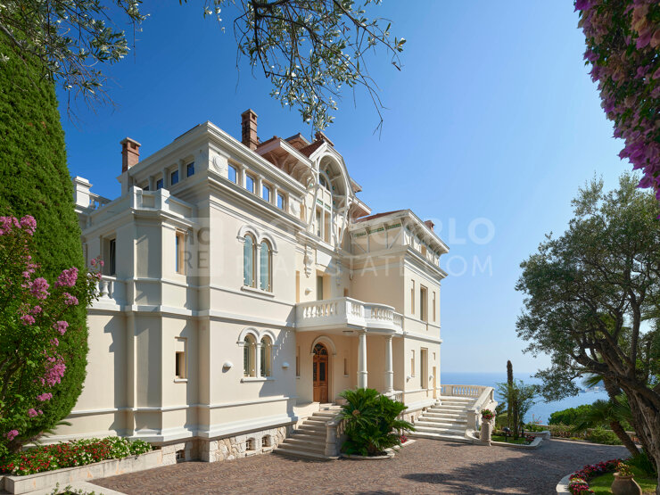 Surplombant Monaco, le Cap Martin et les côtes italiennes, cette majestueuse propriété, datant de 1891, présente une architecture raffinée d'inspiration florentine et fait partie de l'histoire de la Riviera, avec des liens entre le fondateur de la Société des Bains de Mer, Monaco et l'architecte Henri Schmidt.