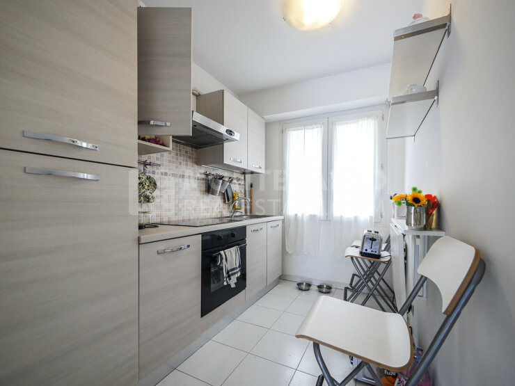 A la frontière de Monaco, à deux pas de la gare et de toutes les commodités, ce deux pièces en étage élevé au sein d'une résidence de standing se compose de la manière suivante :