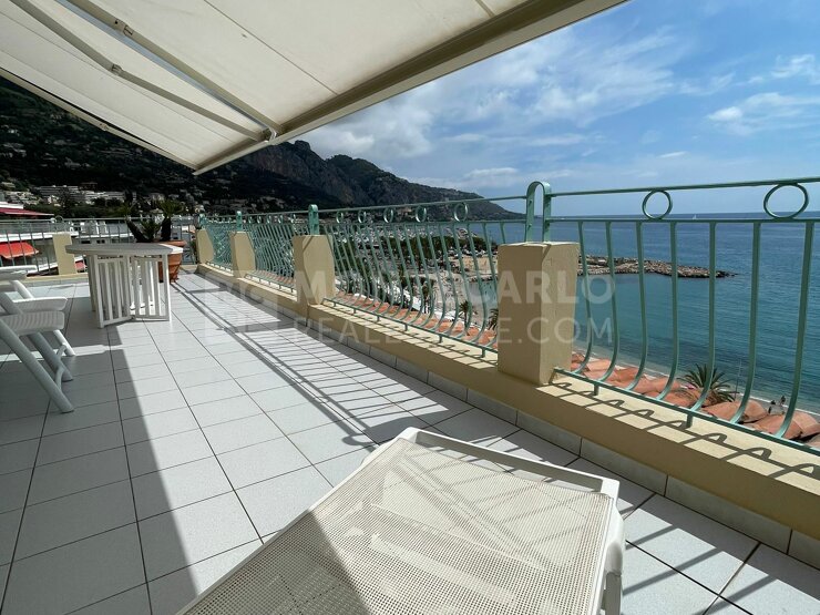 Très lumineux appartement sis en dernier étage d'une résidence de 1930 située en front de mer du prestigieux quartier de Garavan.