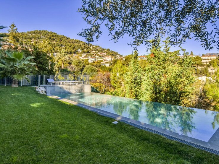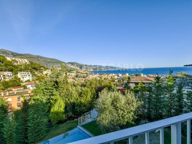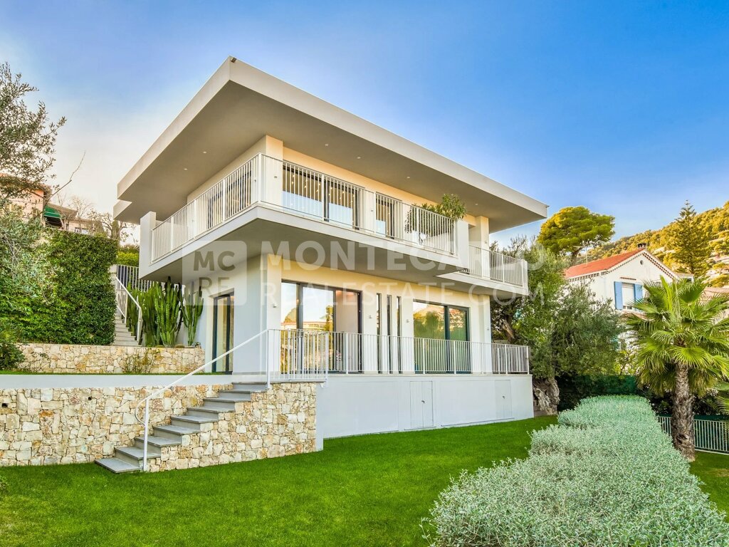 Splendide villa moderne récemment rénovée avec des matériaux de première qualité, nichée dans un quartier résidentiel prestigieux de Roquebrune-Cap-Martin et à seulement 5 minutes à pied du centre-ville.