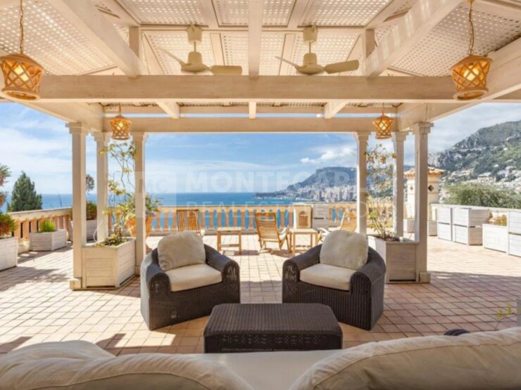 Située à Roquebrune Cap Martin, à seulement 10 minutes de la Principauté de Monaco, superbe propriété Belle Epoque, avec une vue mer panoramique.
