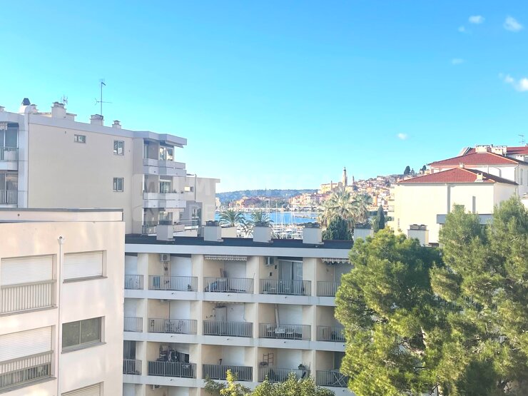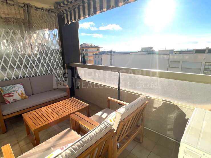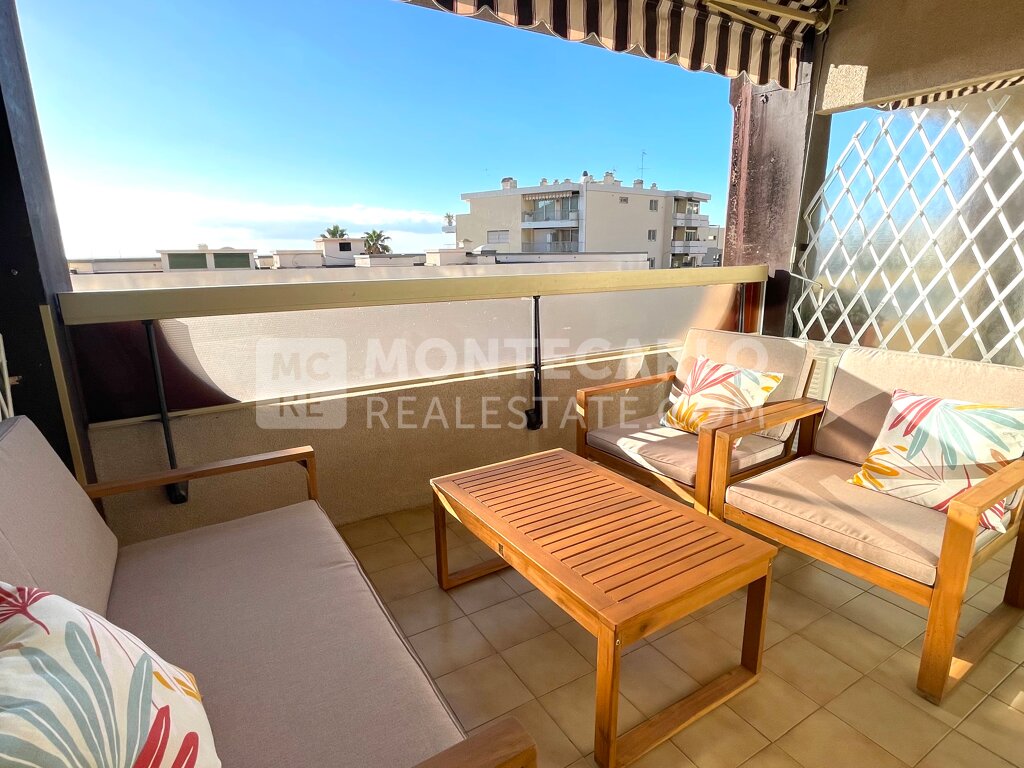Idéalement situé face au port de Garavan, dans une résidence avec ascenseur, en front de mer avec vue sur la vieille ville, près des plages, des restaurants et des commerces, beau studio meublé de 33 m² avec terrasse/loggia de 8 m².