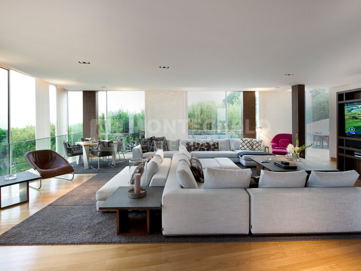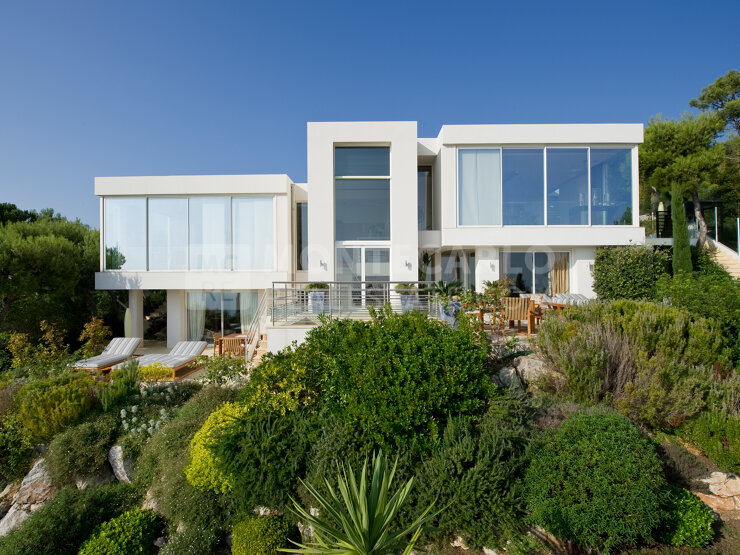 La villa dispose de sept suites, toutes avec salle de bains et terrasse privative, décorées avec élégance et confort. Les espaces de vie, salon et salle à manger, légèrement surélevés, profitent d’une vue mer panoramique à 180°. La cuisine Boffi, entièrement équipée, séduira les amateurs de gastronomie.
