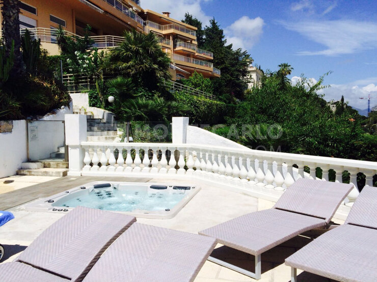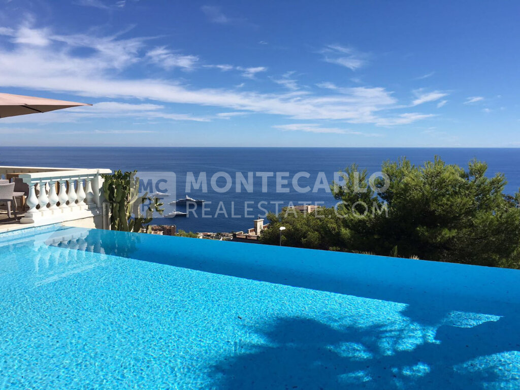 Dans une résidence de grand standing dominant la mer et Monaco, magnifique appartement composé de deux chambres et un double séjour. Immense terrasse et jardin de plain-pied. Vue mer et Monaco panoramique. Piscine dans la résidence. Garage et cave.