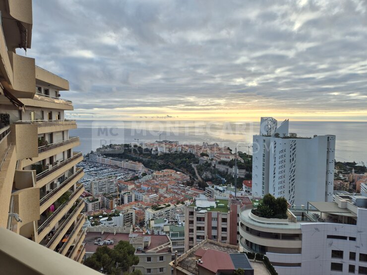 Ce studio est exposé sud/ouest et dispose d'une magnifique vue sur la mer et le rocher. L'appartement est climatisé et la cuisine est neuve.