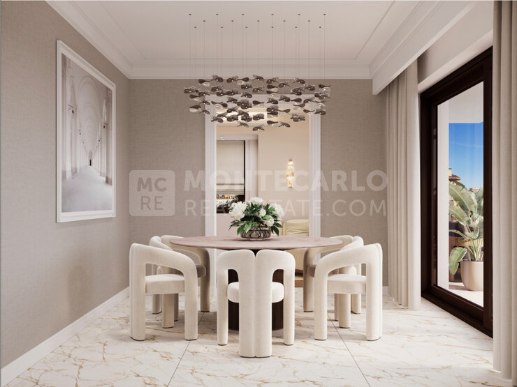 Situé dans le prestigieux quartier du Monte-Carlo à Monaco, ce superbe appartement de 223 m² offre une vue panoramique sur la mer et le célèbre Casino. Actuellement en cours de rénovation complète, il est réalisé avec des matériaux haut de gamme, marbre, parquet et mobilier sur mesure afin de créer un cadre de vie à la fois raffiné et luxueux.