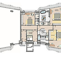 • Au niveau supérieur : un hall d'entrée, un grand salon avec vue imprenable sur la place du Casino, une salle à manger indépendante, une cuisine indépendante équipée, 3 chambres disposant chacune de sa salle de bains et dressings, toilettes invités, une entrée de service séparée ouvrant sur une buanderie.