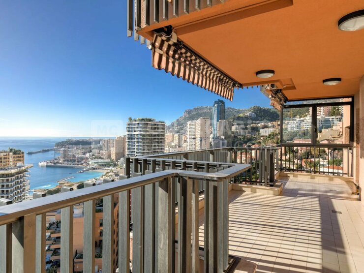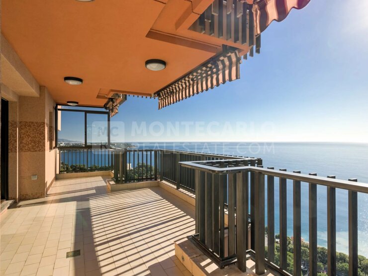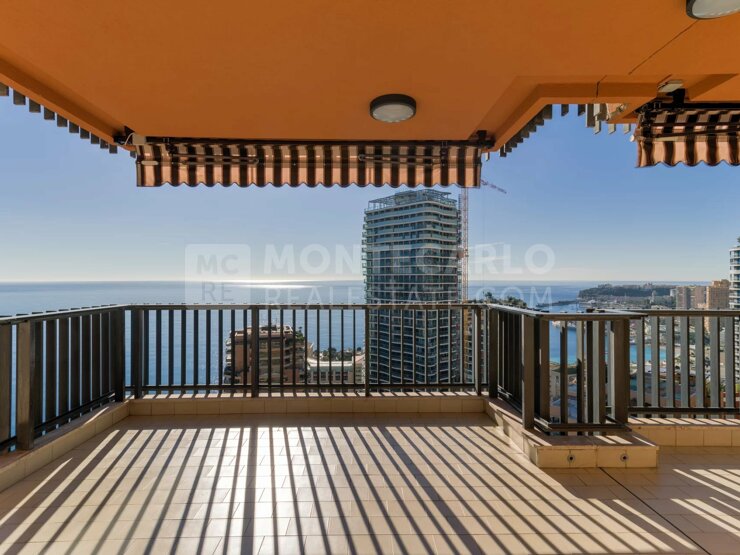 Situé en étage élevé, il bénéficie d’une vue spectaculaire sur la mer et la Principauté, un véritable panorama d’exception !