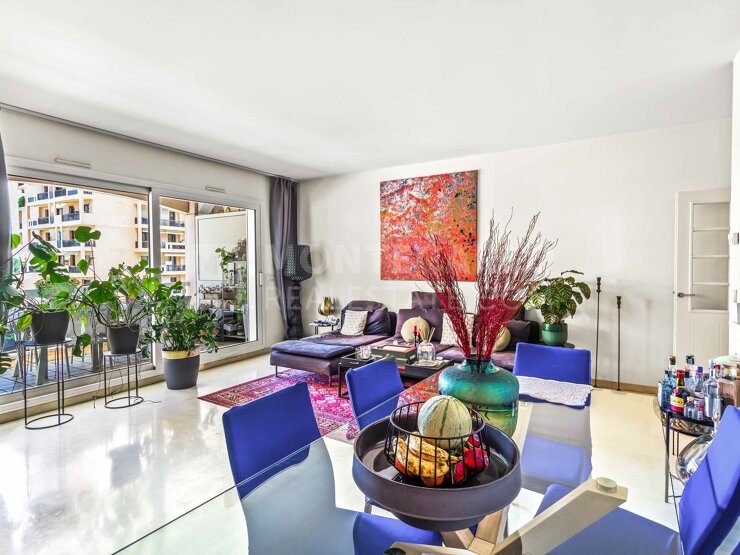 La « VILLA BIANCA » est un immeuble de style moderne situé dans un quartier très demandé de la Principauté, à quelques pas des attractions majeures: le quartier du « Carré d’Or » avec ses boutiques de luxe, les plages du Larvotto avec le centre culturel du Grimaldi Forum qui attire de plus en plus d’événements internationaux, sans oublier que la Rue du Portier et le tout nouveau quartier de MARETERRA deviennent de plus en plus recherchés par une clientèle souhaitant profiter de ses restaurants raffinés et de promenades en bord de mer. Cet appartement s’ouvre par un hall d’entrée avec placard menant en façade à la pièce principale avec balcon, cuisine séparée avec passe-plat équipée, à l’arrière: dégagement menant à deux chambres avec placards ouvrant sur balcon commun, dont une avec salle de bains attenante, salle de douche séparée. Une cave est incluse dans la transaction. Un grand parking double en longueur est disponible en sus au prix de 600.000€.