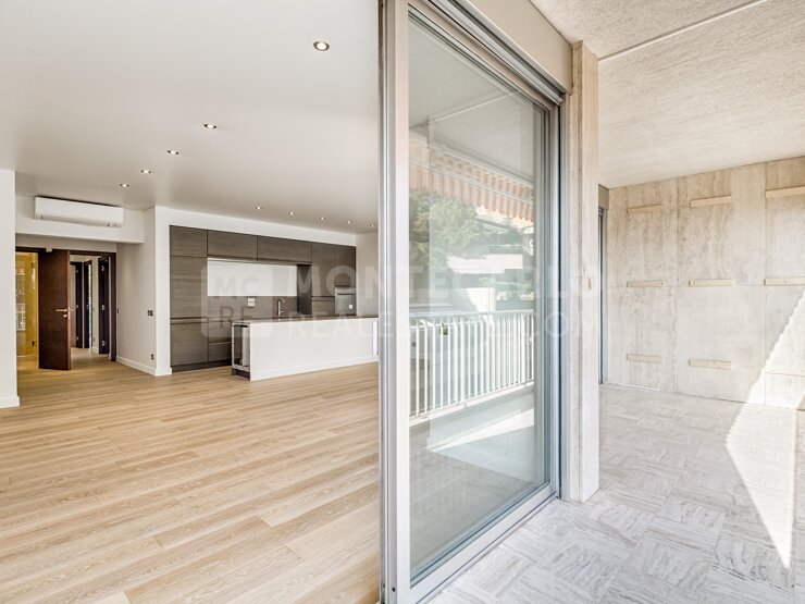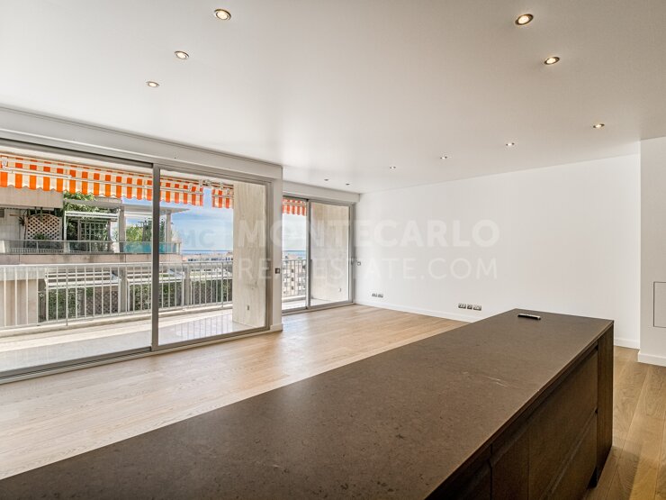 Beau 4 pièces entièrement refait à neuf avec des matériaux de qualité. Belle terrasse avec vue sur la Principauté et la mer. Loué à € 12.900/mois jusqu'au 30/06/2025. Possibilité parking en sus.
