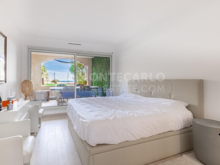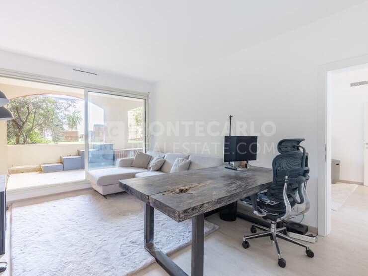 Au sein d'un immeuble entièrement rénové et avec concierge, cet appartement est composé d'une chambre, d'une cuisine équipée et séparée, de 2 dressings, d'une loggia ainsi que d'une terrasse. Une cave est incluse dans le prix et un emplacement de parking est disponible en sus à 350.000€. L'appartement est actuellement loué à 24 375€ charges incluses / trimestre Un jardin d'environ 30 m² participe à la vue agréable de l'appartement
