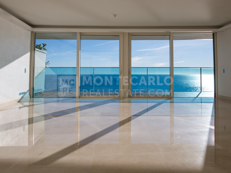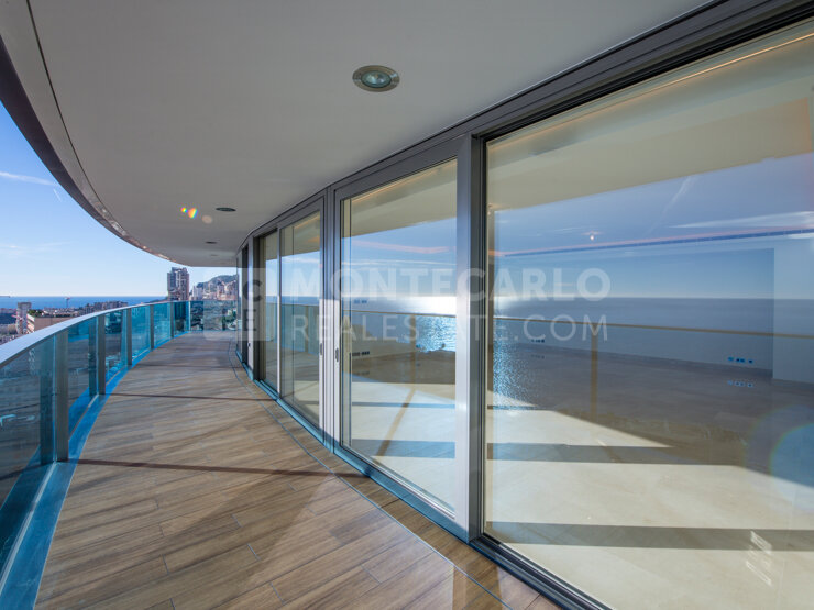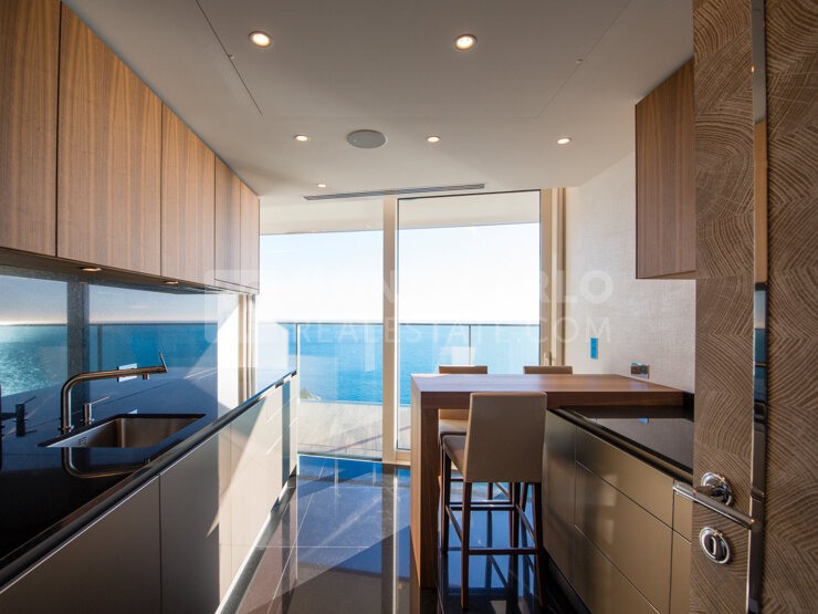 Le 4 Pièces Est A, de typologie unique, propose des espaces lumineux et confortables. Les baies vitrées toute hauteur et ses deux terrasses offrent une vue magnifique sur Monaco et la Méditérrannée.