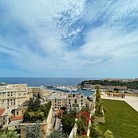 Un accès privatif mène à une exceptionnelle toiture-terrasse dominant Monaco et offrant une vue imprenable.