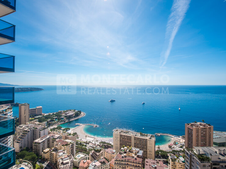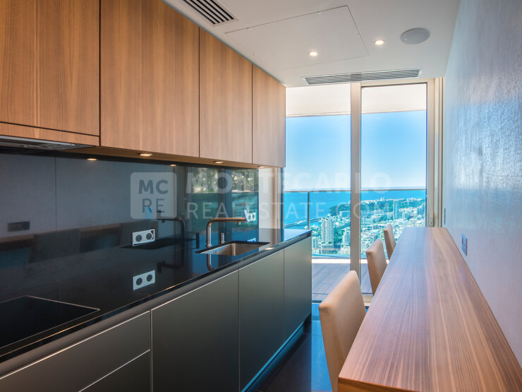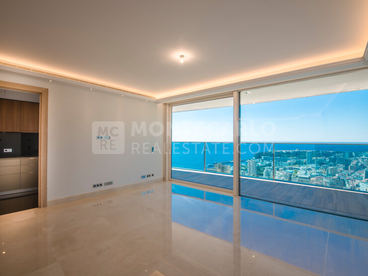 Les baies vitrées toute hauteur et sa vaste terrasse offrent une vue magnifique sur Monaco et la Méditérrannée. L'appartement est composé d'un séjour, et d'une cuisine équipée.