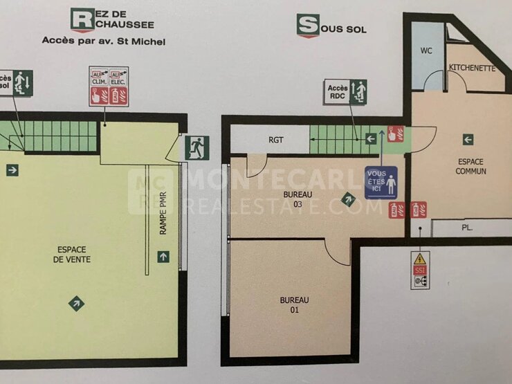 Carré d’Or, moderne et luxueux local commercial avec grande vitrine, disposé sur deux niveaux. Toutes activités autorisées sauf restauration. 1 emplacement de parking en longueur pouvant accueillir 2 voitures.