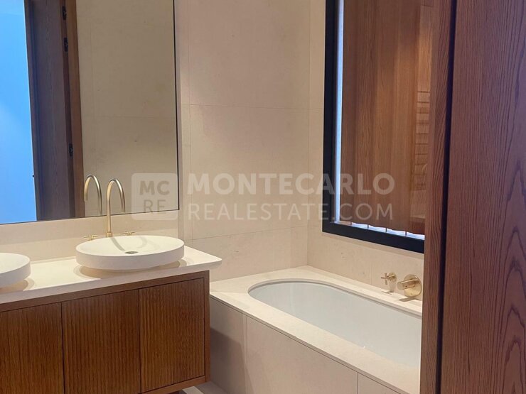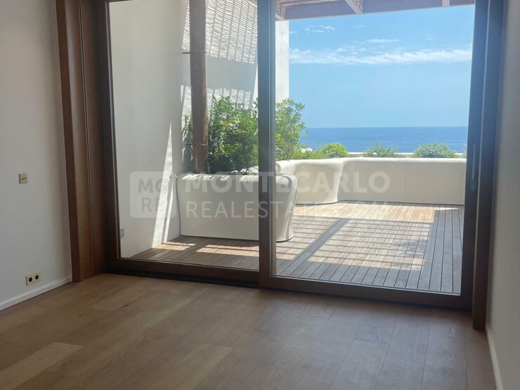 L’appartement offre un vaste séjour prolongé par une terrasse orientée mer, une cuisine moderne entièrement équipée, une buanderie, un toilette invité, ainsi que deux chambres en suite dotées chacune de son propre balcon et d’un dressing, également tournés vers la mer.