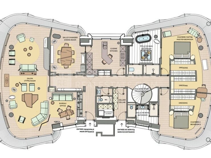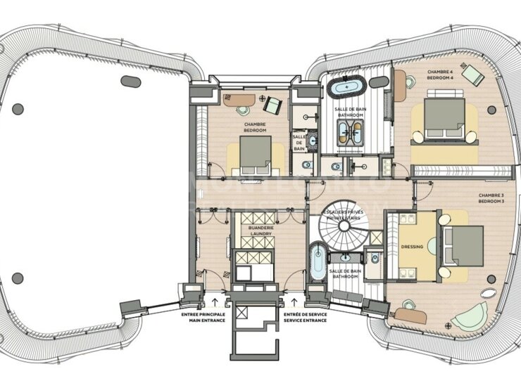 Appartement duplex, situé aux 4ᵉ et 5ᵉ étages de l’immeuble E; un bien d’exception disponible à la location à partir de juin 2026. Cet appartement atypique, non meublé, offre une surface habitable remarquable de 480 m² complétée par 117 m² d’espaces extérieurs. Il se compose de cinq chambres, d’une salle à manger indépendante, d’une cave et de trois parkings privés.