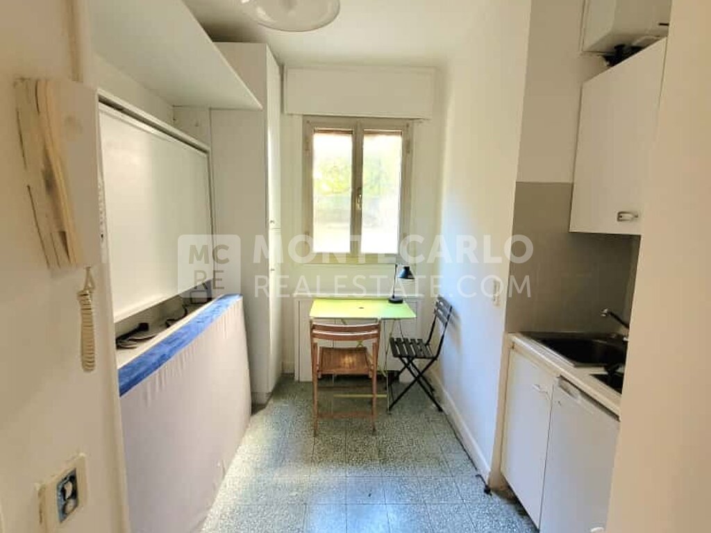 Chambre de service au calme absolu mais idéalement située à proximité des plages du Larvotto et de tous les commerces. Elle se trouve dans un bel immeuble avec gardien.