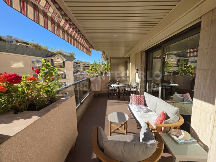 Très bel et vaste appartement de trois-quatre pièces principales comprenant : entrée, salle de séjour-salle à manger, deux chambres, office, cuisine, deux salles de bains avec WC, WC avec lavabo, dressing, dégagement, placards, balcon avec jardinières, balcon.