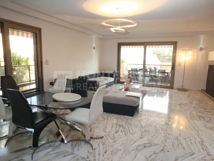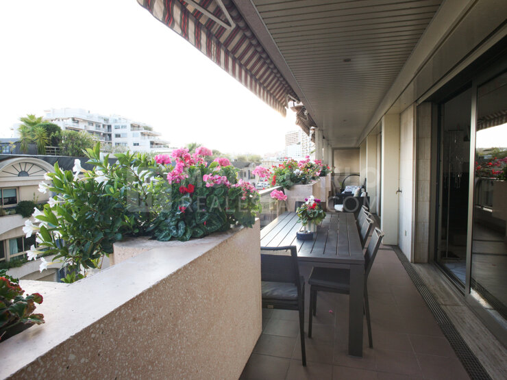 Très bel et vaste appartement de quatre - cinq pièces principales, comprenant : entrée - dégagement, salle de séjour - salle à manger (transformée en chambre), trois chambres, office, cuisine, trois salles de bains avec WC, WC avec lavabo, dressing, dégagement, placards, terrasse faisant le tour de tout l'appartement.