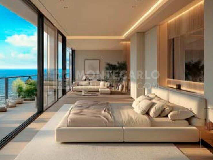 Cet appartement contemporain se trouve dans le nouveau quartier côtier de Mareterra, un lieu unique qui marie l’architecture urbaine à l’harmonie de la nature. Il offre bien plus qu’un simple espace de résidence, c’est un lieu de vie où le calme de la mer s’accorde parfaitement avec le rythme de Monaco. Chaque pièce est inondée d’une lumière douce et s’ouvre sur la mer Méditerranée. L’intérieur se distingue par une élégance sobre, avec des matériaux naturels, des lignes épurées et des finitions haut de gamme qui créent une ambiance chaleureuse et esthétique. La cuisine, la salle à manger et le salon se fondent les uns dans les autres pour former un ensemble fluide, ouvert et fonctionnel. Vivre dans cet appartement, c’est goûter à un confort rare et à un véritable privilège. Une vaste terrasse, des vues dégagées sur l’horizon, la possibilité de savourer un lever de soleil ou un dîner en plein air deviennent ici des instants du quotidien. Le résident bénéficie également d’un accès exclusif aux prestations exceptionnelles de la résidence, où chaque détail est pensé pour un art de vivre raffiné et exigeant. Loyer mensuel: 150.000€ + Charges
