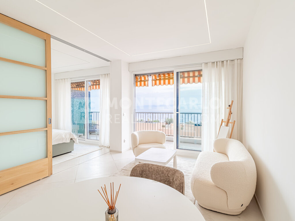 Entièrement rénové, ce lumineux deux-pièces s’ouvre sur une entrée menant à un séjour accueillant prolongé par une terrasse avec vue mer. La cuisine américaine, équipée avec soin, accompagne des pièces de vie claires et fonctionnelles. La chambre bénéficie d’un accès aisé aux rangements, complétée par une salle de douche élégante et des toilettes invités. Les finitions contemporaines et la distribution fluide renforcent le confort de l’ensemble.