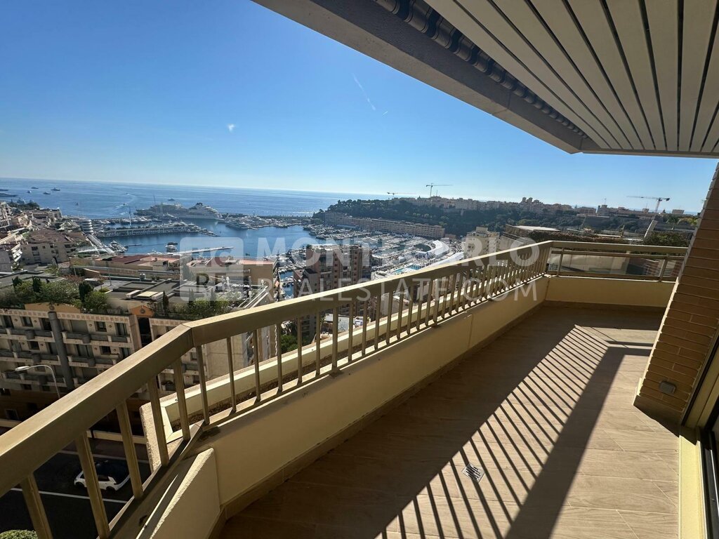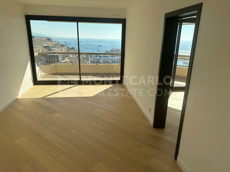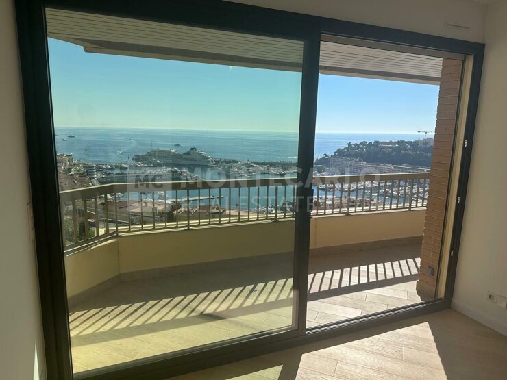Appartement 3 pièces très lumineux, entièrement rénové avec des finitions haut de gamme et équipé de la climatisation. Il offre une vue panoramique à 180° sur la Principauté, le Port Hercule, la mer et le Rocher, avec un accès direct au Port de Monaco par ascenseur.