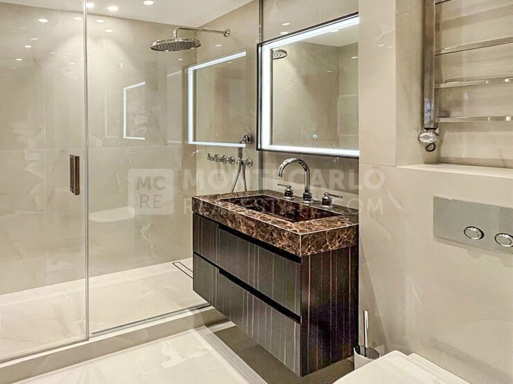 Situé dans la résidence prisée du Roqueville, au cœur du Carré d’Or, cet élégant appartement 3 pièces offre un cadre de vie rare et recherché, à seulement 5 minutes à pied de la Place du Casino. Traversant, lumineux et entièrement rénové, il bénéficie d’un emplacement privilégié, dans une résidence calme avec jardins paysagers et service de conciergerie, tout en étant à proximité immédiate des boutiques de luxe et des restaurants emblématiques de Monaco. L’intégralité de l’appartement a été rénové avec des matériaux nobles et des prestations de qualité. Les sols sont revêtus de parquet en bois massif, apportant chaleur et élégance à chaque pièce. Les deux salles de douche ont été habillées de marbre, soulignant le soin apporté aux détails et au confort. La cuisine sur-mesure, ouverte sur le séjour, est entièrement équipée avec de l’électroménager Miele, garantissant performance et design. De nombreux rangements intégrés ont été pensés dans chaque espace pour allier esthétisme et fonctionnalité. Le mobilier, sélectionné avec goût, complète l’ensemble avec une décoration contemporaine et raffinée. Ce bien représente une opportunité rare d’acquérir une résidence clé en main dans l’un des quartiers les plus recherchés de la Principauté.